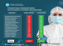 2021 ЙИЛ 1 АВГУСТ КУНИ 498 НАФАР КИШИДА ПНЕВМОНИЯ АНИҚЛАНИБ, ЖАМИ БЕМОРЛАР СОНИ 11367 НАФАРГА ЕТДИ ...