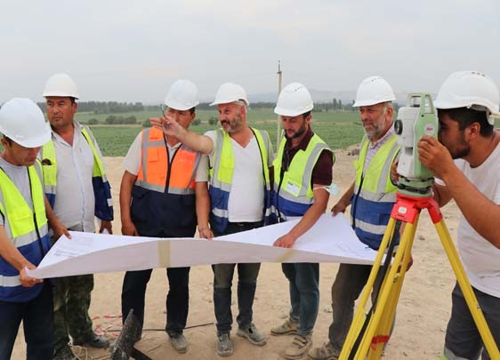 Суратда: Янги Андижон шаҳарчасининг кириш қисмида савдо ва сервис хизмати марказлари барпо этаётган "MIMAR GROUP" компаниясининг мутахассислари амалга ошириладиган ишларни режалаштирмоқдалар.