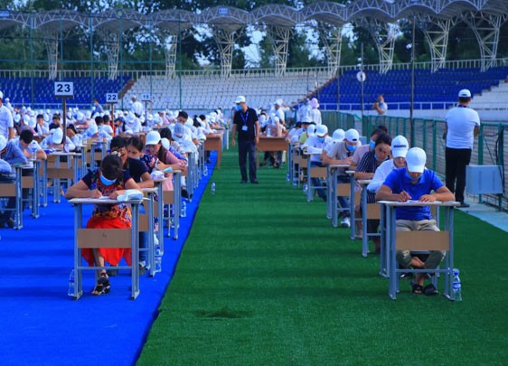 Андижон шаҳридаги Болалар ва ўсмирлар спорт мактабининг очиқ спорт майдонларида синовлар юқори савияда ташкил қилинмоқда.Вилоят ҳокимлиги ва тегишли ташкилотчилар томонидан тест синовларини белгиланган меъёрлар асосида тартибли ва кўтаринкиликда ташкил этиш бўйича зарур чора-тадбирлар кўрилган. Қизғин ҳозирлик яратилган шароитларда ҳам акс этяпти. Синовлар ўтадиган ҳудудлар керакли анжомлар билан жиҳозланган. Назоратчилар саволлар китоби, жавоблар варақаси, илова ва шаклларни қандай тўлдириш ҳақида яна бир бор эслатиб ўтдилар. Ижтимоий масофа сақлаган ҳолда ўриндиқларга жойлашган абитуриентлар ишонч билан жавоблар варақасини тўлдиришга киришдилар.
