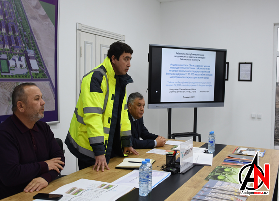 - Президентимизнинг топшириқларига биноан экин суғоришга оид бўлмаган майдонларнинг 4 минг гектари танлаб олинган эди. Шунингдек Янги Андижон шаҳрини барпо этиш жараёнида замонавий технологияларга асосланган ҳолда унинг микросейсмик харитасини ишлаб чиқиш белгиланган. Ушбу чора-тадбирлар асосида Янги Андижон Дирекцияси ва Сейсмология институти билан тузилган шартномага кўра илмий ишларни амалга оширдик. Бугун эса барча тадқиқотлар ниҳоясига етиб, лойиҳа тақдимотига йиғилдик,- дейди дирекция директори Азизбек Омонов.